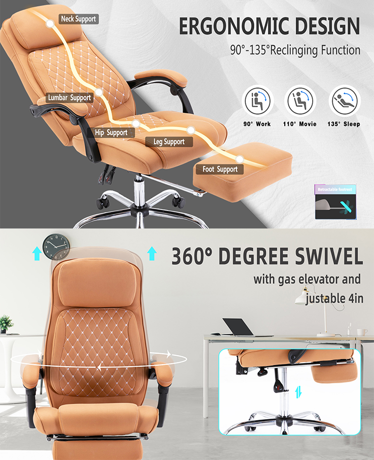 【Footrest Included】:Computer chair comes with a convenient footrest, providing relaxation and support during rest or reclining.