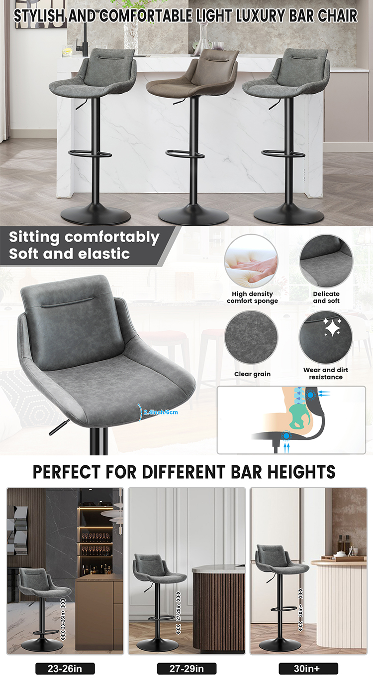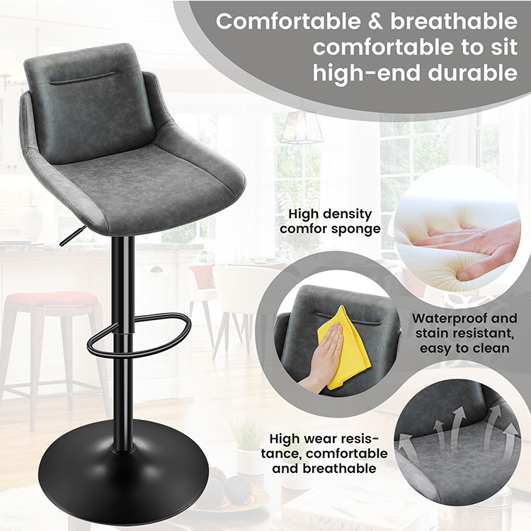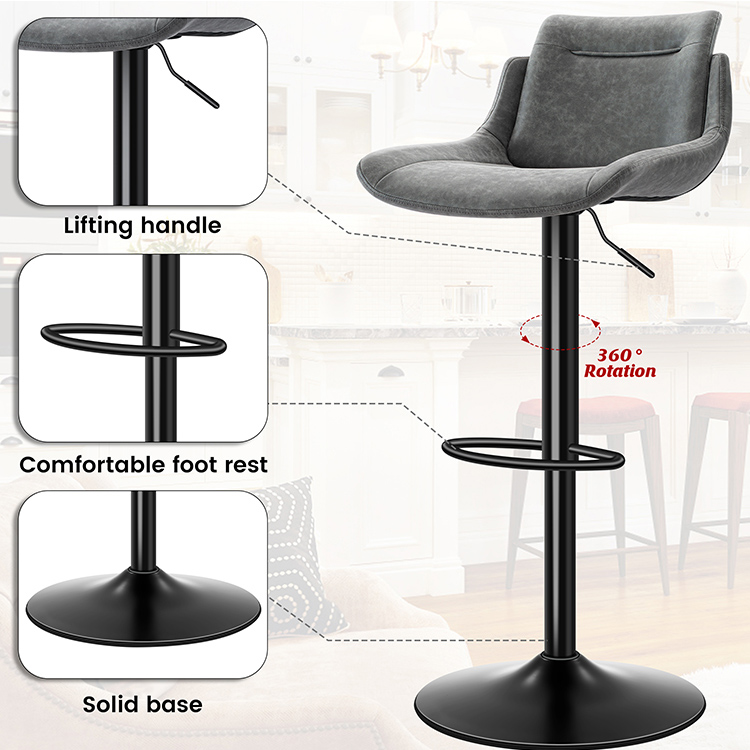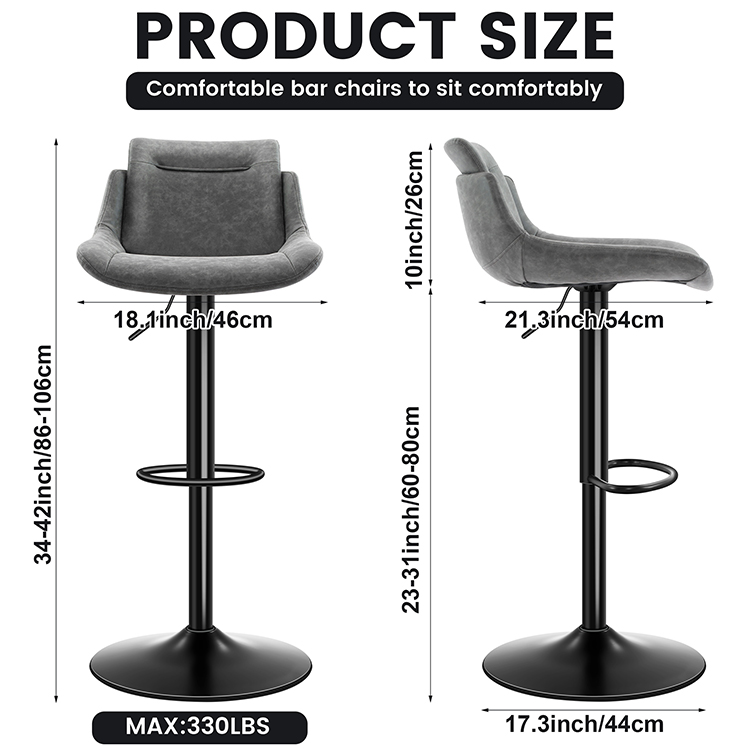 【Adjustable Height】: The bar stools' seat height could adjusted easily with the lift handle, meet the needs of different heights. The chairs sit on a high-intensity gas lift that rotates 360 degrees for full mobility. Be sure to remove the cover of gas lift before assembly.
