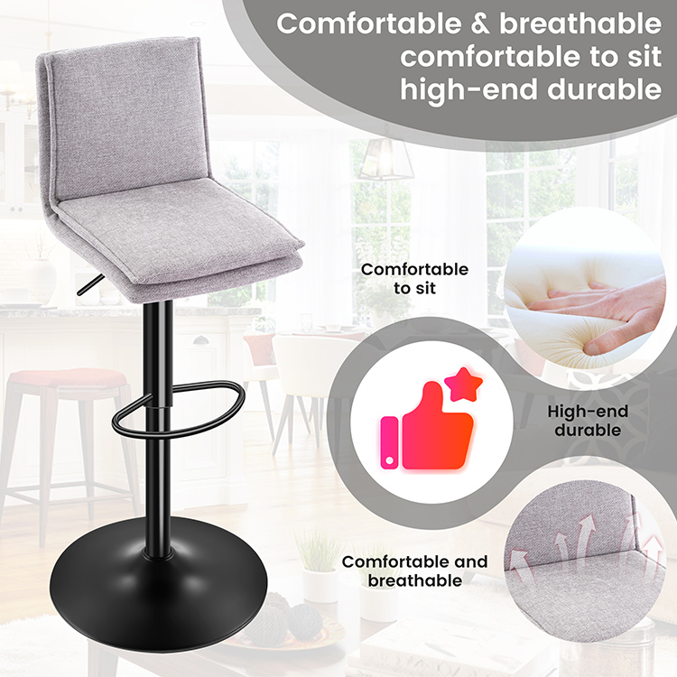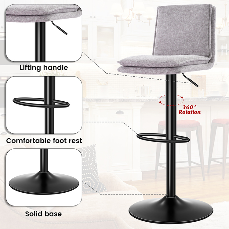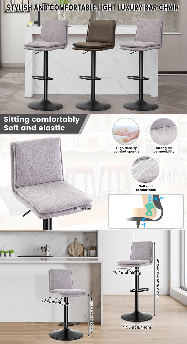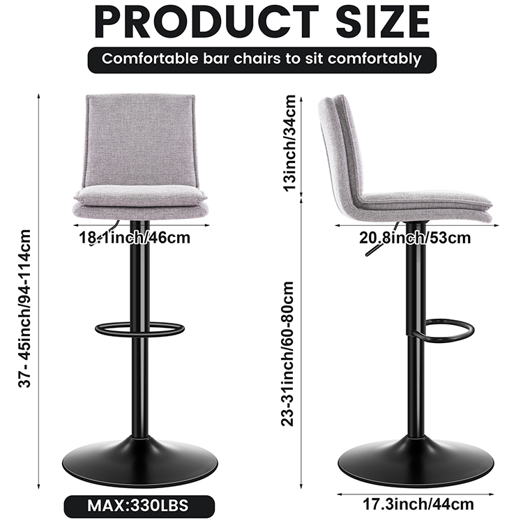 【Adjustable Height】: The bar stools' seat height could adjusted easily with the lift handle, meet the needs of different heights. The chairs sit on a high-intensity gas lift that rotates 360 degrees for full mobility. Be sure to remove the cover of gas lift before assembly.